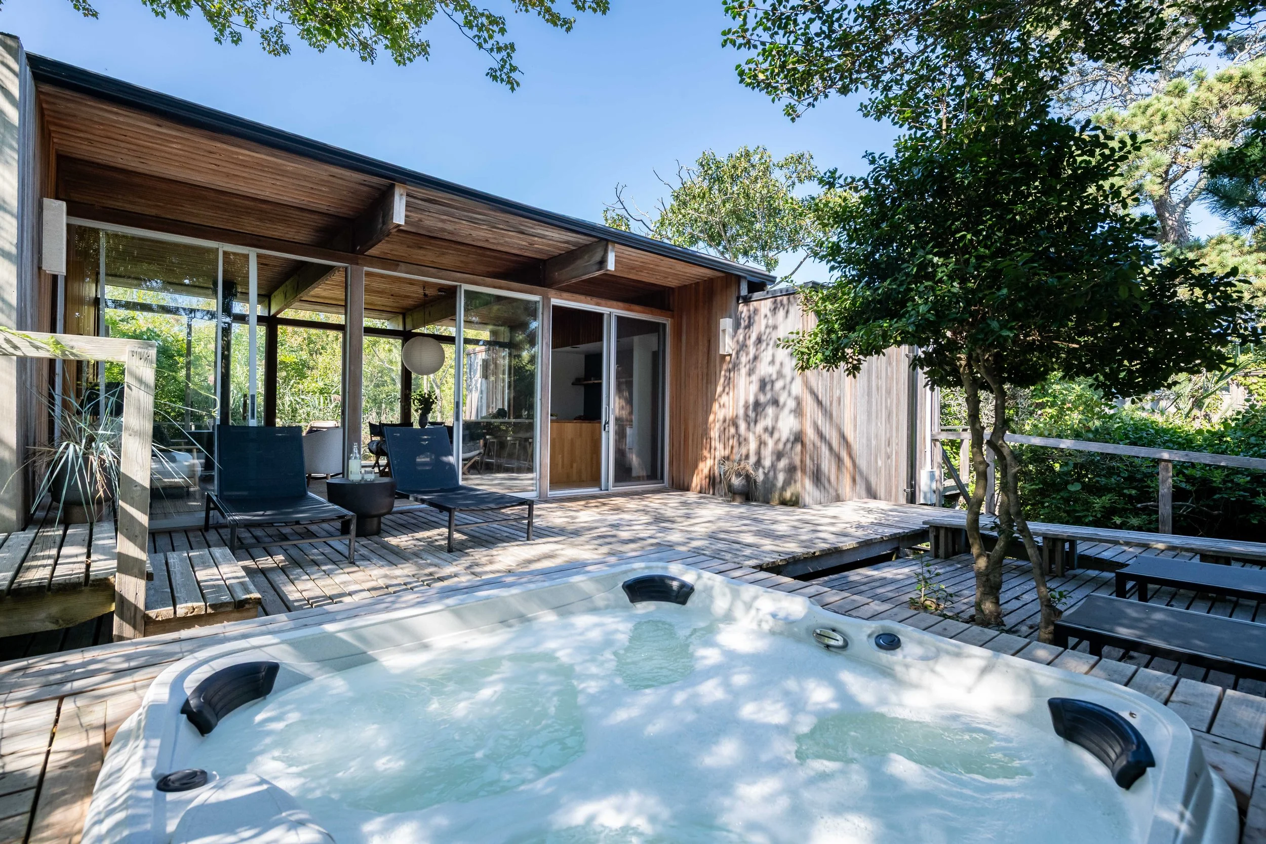 The home is situated in a deep, private lot. Recent renovations throughout the house include new Bosch appliances, central HVAC system, new bathrooms (two), new kitchen a wood burning stove, and a brand new jacuzzi.