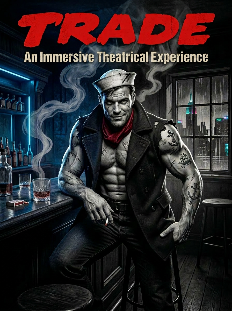 TRADE is a bar where opposites clash in a limbo state. The time period is part 1920’s, part apocalyptic future. The location is part seedy basement speakeasy, part cruising park. The aesthetic pulls from both classic film noir and more modern, edgy films such as“Sin City” and “Moonwalker,” from history and from the present day. Other points of reference are Cabaret, The Wild Party, and The Life.
